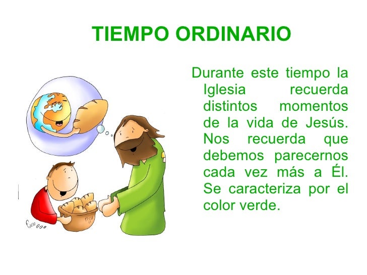 - Durante este tiempo la Iglesia recuerda distintos momentos de la vida de Jesús. Nos recuerda que debemos parecernos cada vez más a Él. Se caracteriza por el color verde.